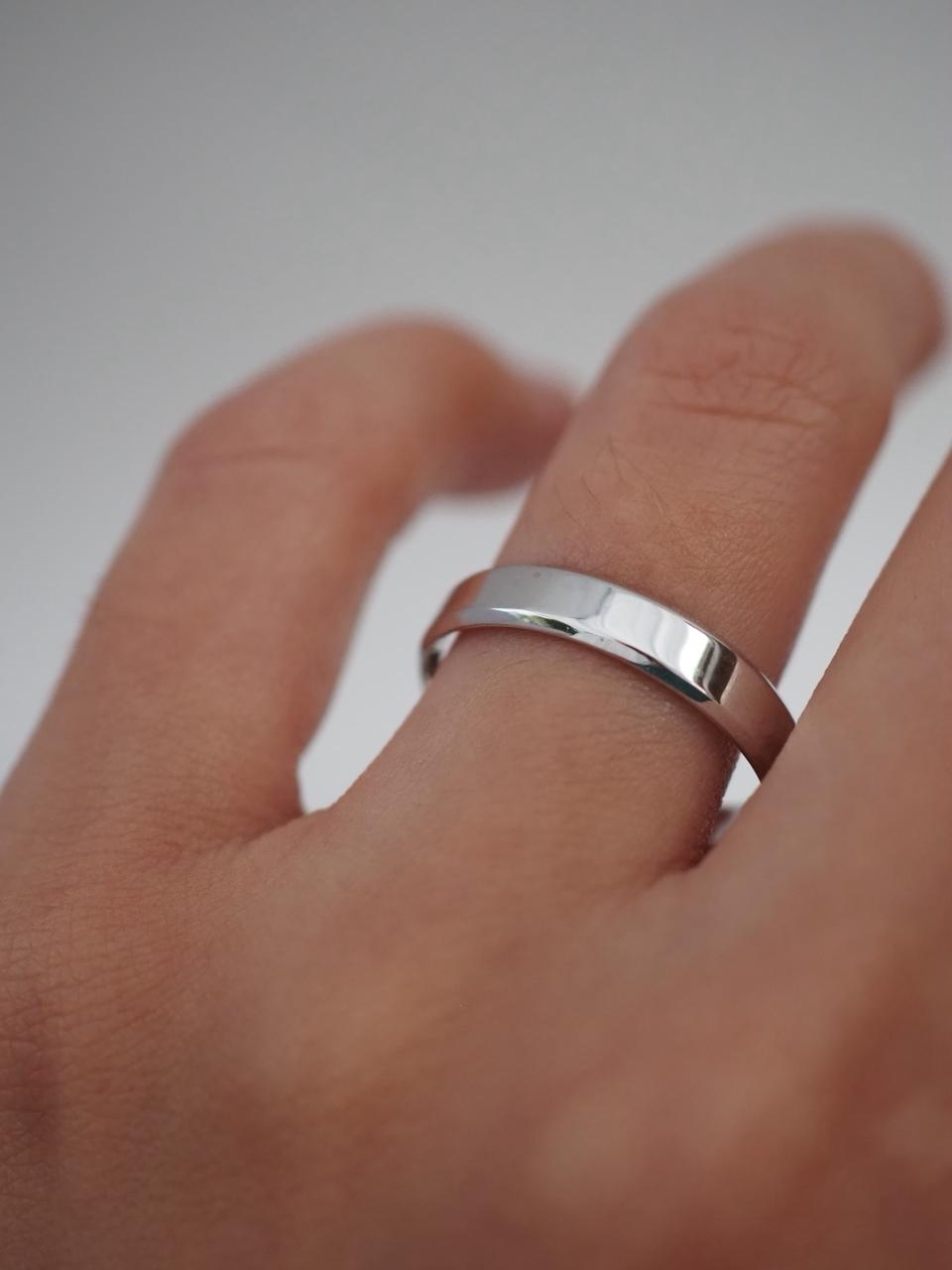 Un anillo que se siente sólido, moderno y atemporal a la vez—perfecto como alianza de matrimonio o como una pieza de estilo cotidiano para quienes prefieren la sofisticación mínima.