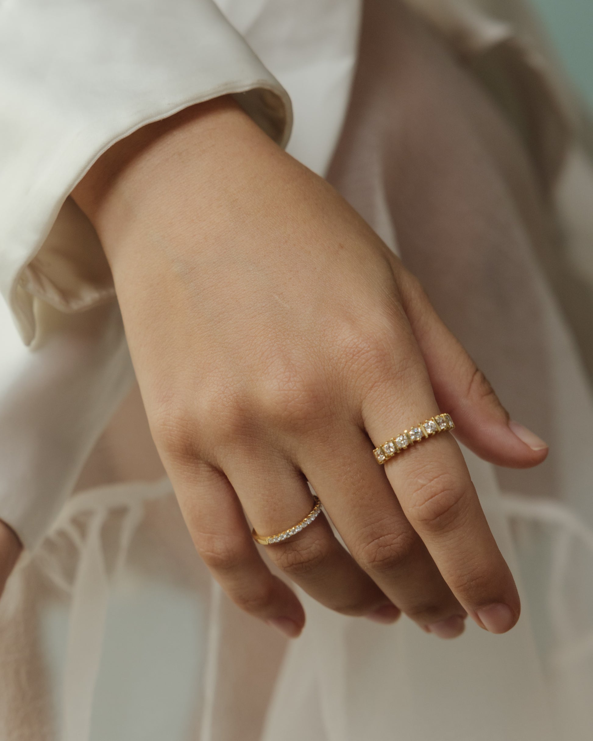 Con un encanto vintage irresistible, el Arabelle enamora con su engaste en barra que resalta cada una de sus piedras naturales. Un diseño audaz y sofisticado que no pasa desapercibido.
